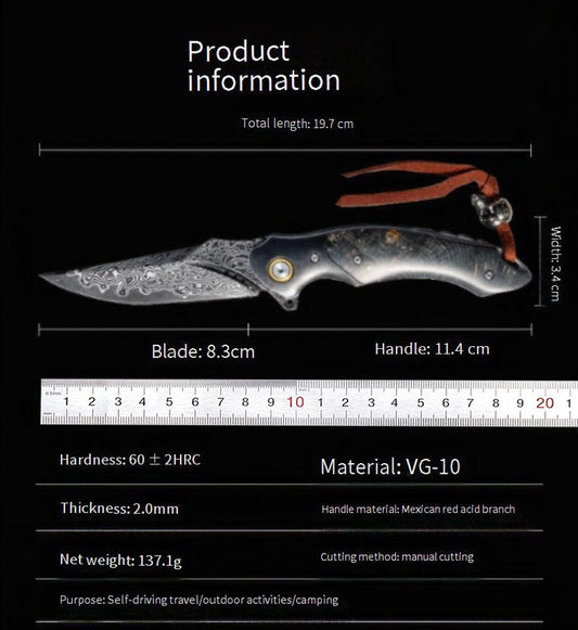 Regular price $54.00 USDRegular priceUnit price / per$60.00 USDSale price $54.00 USDKni281 outdoor survival knife camping field self-defense folding knife Damascus VG10
