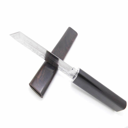 MASALONG Kni128 Damascus Black Samurai Short Sharp Ebony Wood Handle Straight Knife Of Hunting Camping