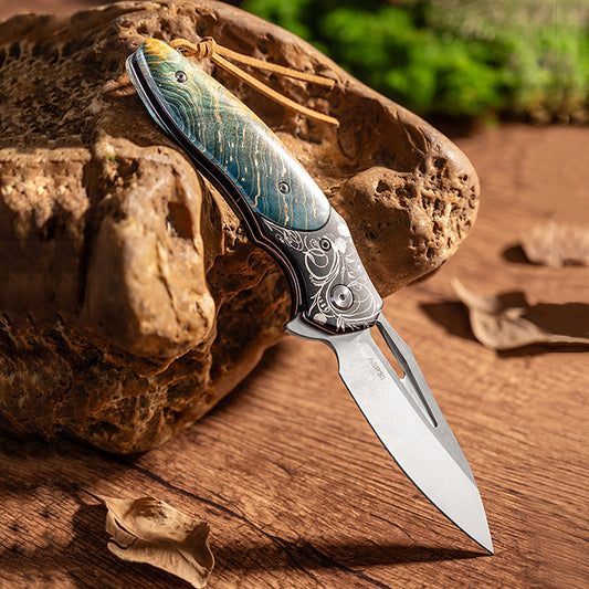 Kni284 Outdoor Folding Knife ASP30 Powder Steel Stable Wood Handle Wire Lock Folding Outdoor Knife