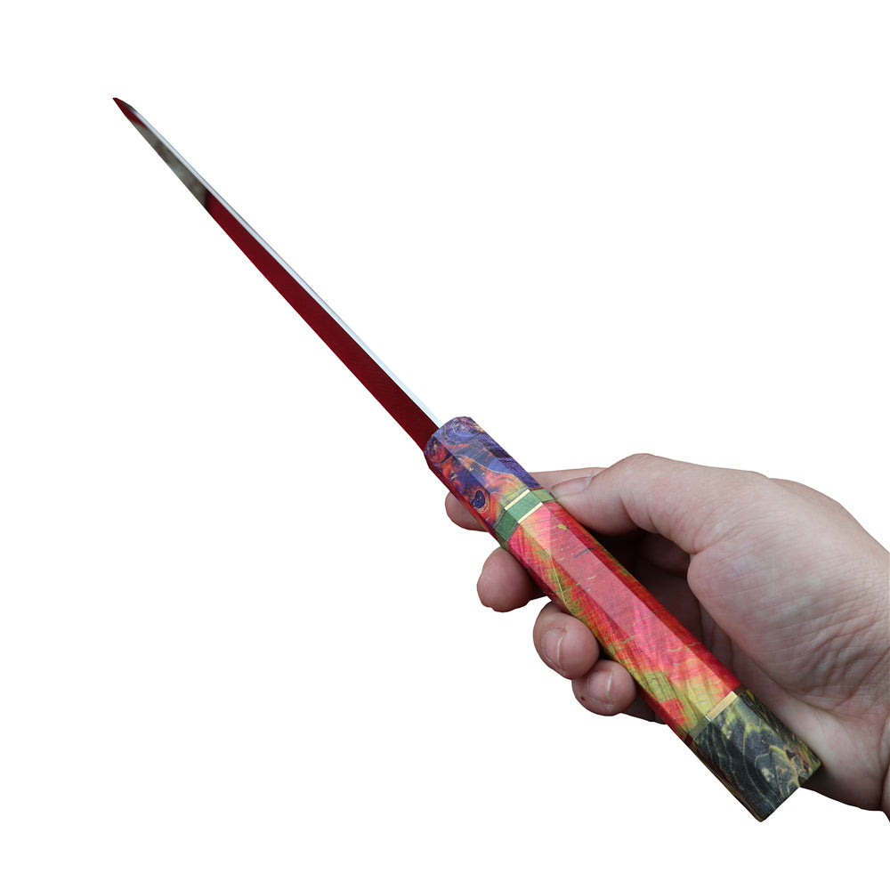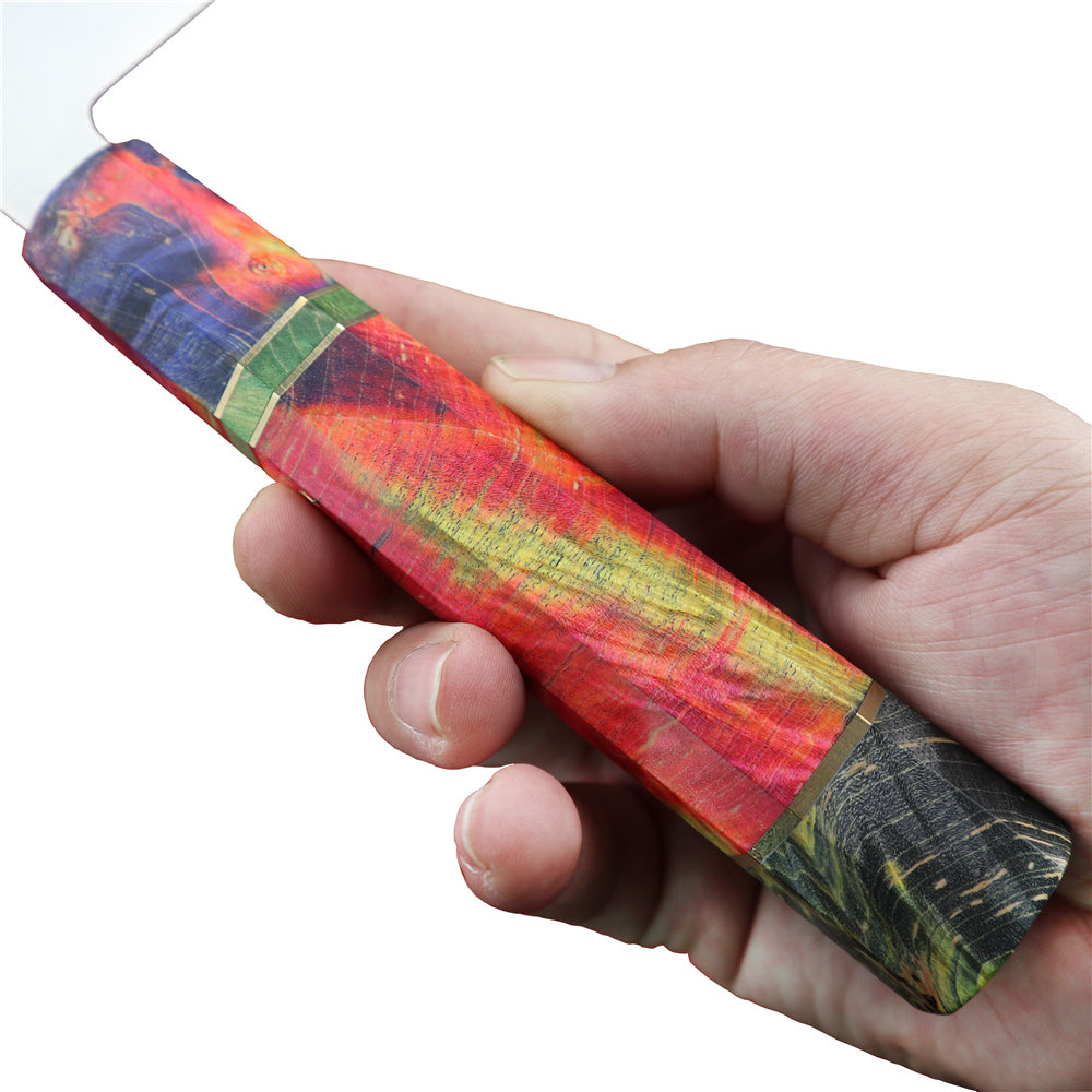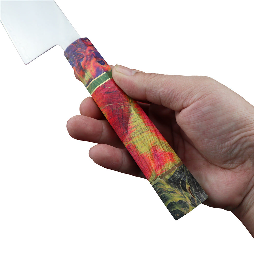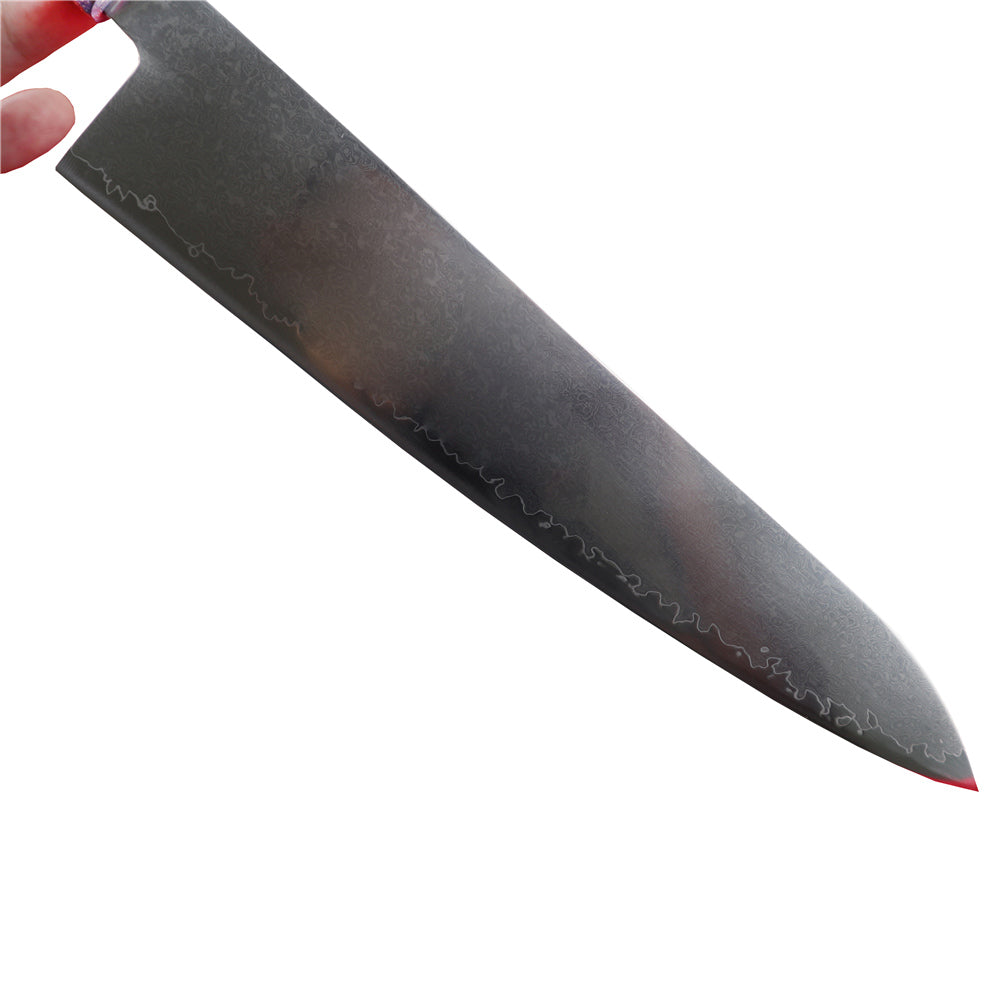 O Japão importa aço de couro VG10 Damasco, faca de cozinha de primeira escolha de presente de alta qualidade! Formato agressivo, materiais de alta qualidade, 106 processos cuidadosamente polidos, durabilidade afiada. O cabo é polido à mão, formato octogonal de castanha d'água, muito confortável e sem esforço; o cabo é feito de material de madeira solidificada estável e caro, atmosfera de alta qualidade, sem deformação, sem rachaduras, sem descoloração. Seu padrão é único. Não consegue encontrar dois padrões idênticos de madeira solidificada. Cada faca é única. É a primeira escolha para cada colecionador e usuário!