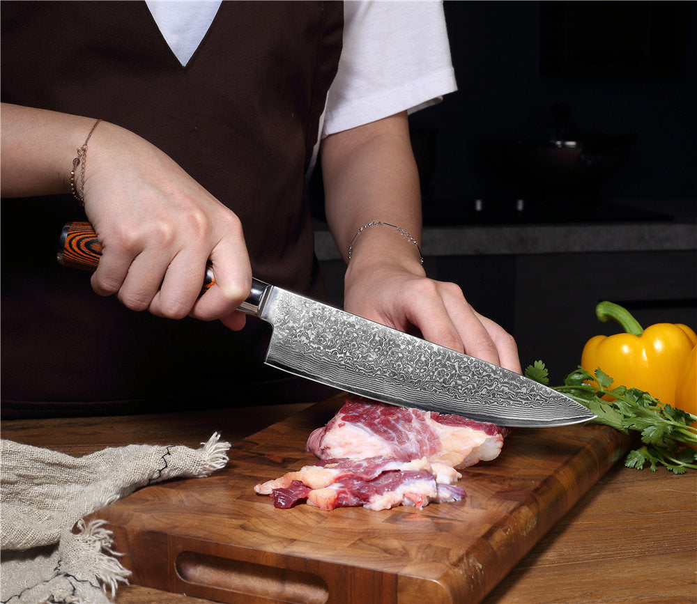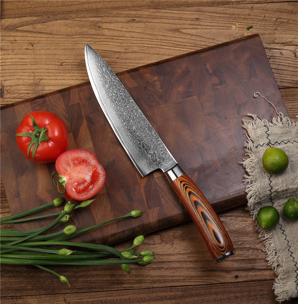 MASALONG Cozinha 4 Facas Laser Damasco Facas de Chef Cabo de Madeira Colorido Cutelo Afiado Faca de Cozinha para Fatiar